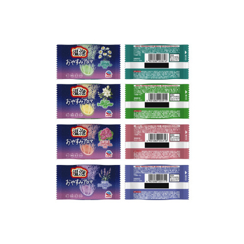 ●薬事販売名/バスアースVHS-6(まどろみのムーンカモミールの香り)、バスアースVHS-6(心地よいヒーリングジャスミンの香り)、バスアースVHS-6(心寄り添うナイトゼラニウムの香り)、バスアースVHS-6(静寂のアロマラベンダーの香り)