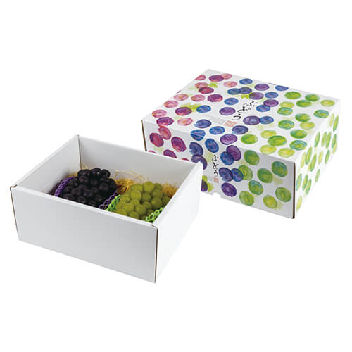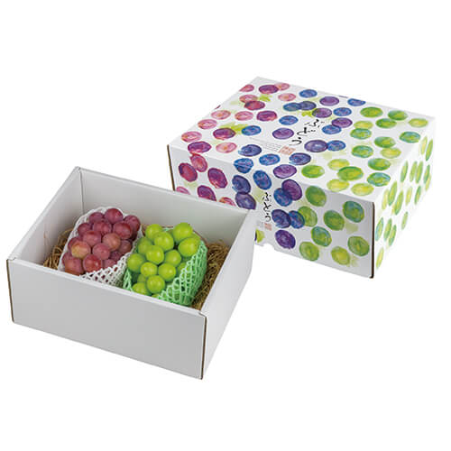 サイズが身315×263×140(フタ348×268×143)mmのフルーツ用ギフトパッケージ。ブドウ2房にちょうど良い大きさとなっています。ブドウのパッケージ、ギフト包装にいかがでしょうか。