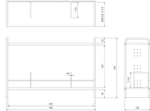 ●棚板下空間寸法/幅854×奥行250×高さ80mm