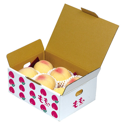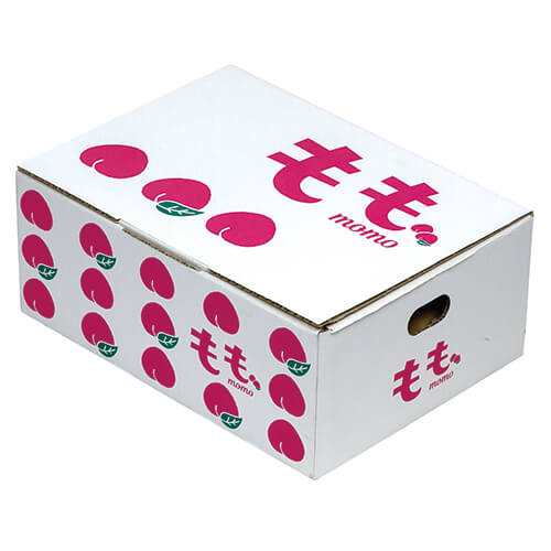 サイズが270×200×110mmのフルーツ用ギフトパッケージ。桃Lサイズ6個にちょうど良い大きさとなっています。桃のパッケージ、ギフト包装にいかがでしょうか。