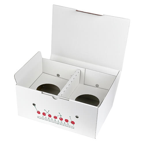サイズが269×180×122(外寸271×187×125)mmのフルーツ用ギフトパッケージ。さくらんぼ200gパック×4にちょうど良い大きさとなっています。さくらんぼのパッケージ、ギフト包装にいかがでしょうか。
