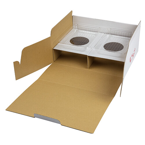 サイズが295×205×120mmのフルーツ用ギフトパッケージ。イチゴ300g4パックにちょうど良い大きさとなっています。イチゴのパッケージ、ギフト包装にいかがでしょうか。