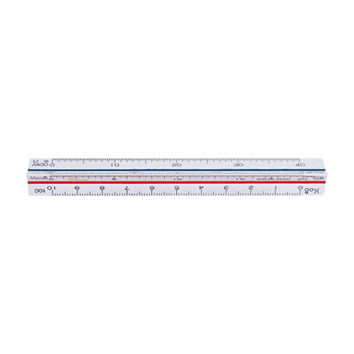 図面作成、寸法の読み取りに使用する三角スケール。