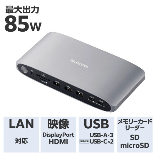 ●インターフェース/Type-C(USB3.2(Gen2))ポート×2、USB-A(USB3.2(Gen1))ポート×3、HDMI×3、DisplayPort×2、LANポート×1、SD+microSDリーダー、4極φ3.5端子×1