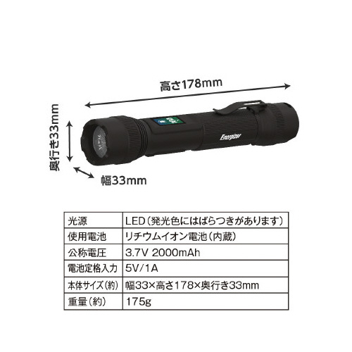 稼働時間とバッテリー残量をデジタルで表示。繰り返し使える充電式。