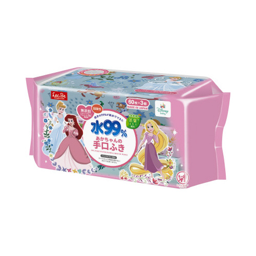 成分の99%が純水でできた手口ふきです。パラベン・PG・アルコール・香料・着色料無添加。パッケージの柄はランダムとなります。