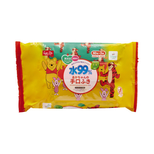 成分の99%が純水でできた手口ふきです。パラベン・PG・アルコール・香料・着色料無添加。パッケージの柄はランダムとなります。