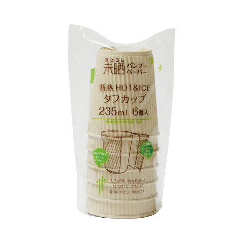 生長が早い竹を利用した非木材パルプ配合の未晒しカップ。厚手で丈夫な3層構造の断熱カップです。表面は凸凹加工で持ちやすい。環境にやさしい商品です。