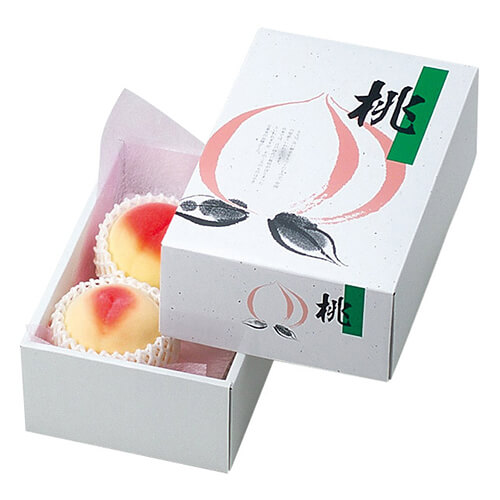 サイズが280×175×105mmのフルーツ用ギフトパッケージ。桃Lサイズ6個(約1.8~2kg)にちょうど良い大きさとなっています。桃のパッケージ、ギフト包装にいかがでしょうか。
