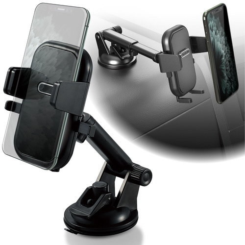 スマートフォンをワンタッチでらくらくホールド!長さも向きも自由自在に調整できるアームを装備した、繰り返し使えるゲル吸盤タイプの車載ホルダー。