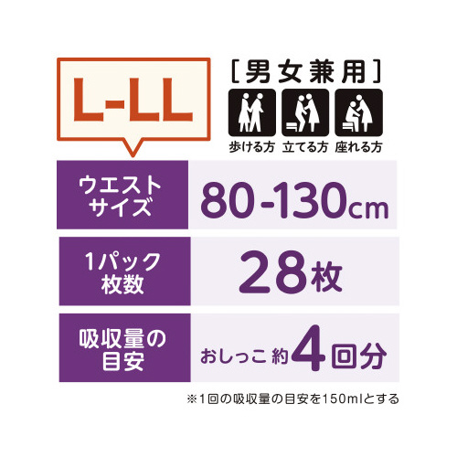 歩ける方、立てる方、座れる方におすすめ。当社パンツ史上うすさNO.1(約2.2mm)で、はきごこち快適・モレ安心。尿・汗・便臭をやわらげる抗菌効果のある超強力消臭シートで気になるニオイも瞬間消臭。