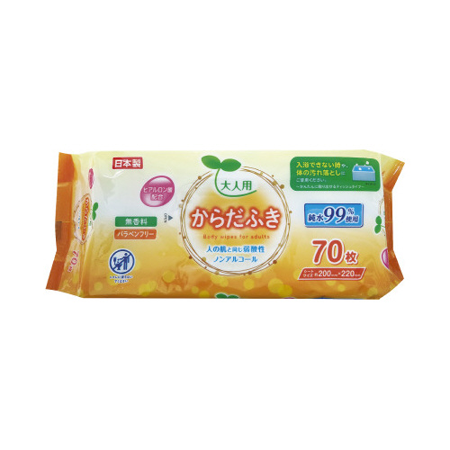 人の肌と同じ弱酸性。ノンアルコール。入浴できない時や、体の汚れ落としにご使用ください。