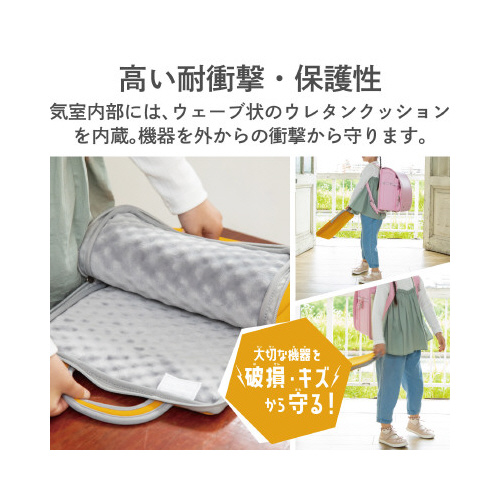 大切な機器を守る!効果的に衝撃を吸収する低反発ポリウレタンを内蔵しながらも、ランドセルに収納可能なコンパクトさを実現した、ハンドル付き耐衝撃インナーバッグ。