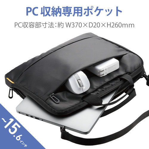 ハンドル付きで、持ち運びに便利!小物ポケットも備えた、軽量設計で使いやすい15.6インチ対応ショルダーベルト付インナーバッグ。