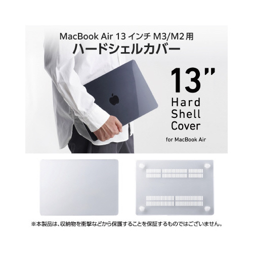 ●仕様/■対応モデル:MacBook Air 13インチ M3(2024年モデル)、MacBook Air 13インチ M2(2022年モデル) ■重量:約210g ■材質:ポリカーボネート、シリコン ■カラー:クリア