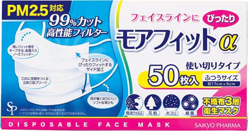 フェイスラインにピッタリフィットするサイド加工 ソフトな丸ゴム4mm。BFE、PFE、VFE99%カット。