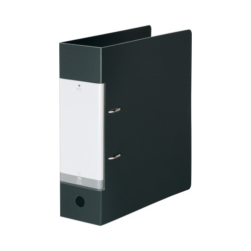 約750枚大量収納のD型リングファイル。ファイルのゆがみを防ぐセーフティストッパー付き。書類をしっかり押さえる樹脂製紙押さえ付き。背見出し交換可能タイプ。