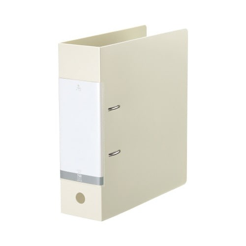 約750枚大量収納のD型リングファイル。ファイルのゆがみを防ぐセーフティストッパー付き。書類をしっかり押さえる樹脂製紙押さえ付き。背見出し交換可能タイプ。