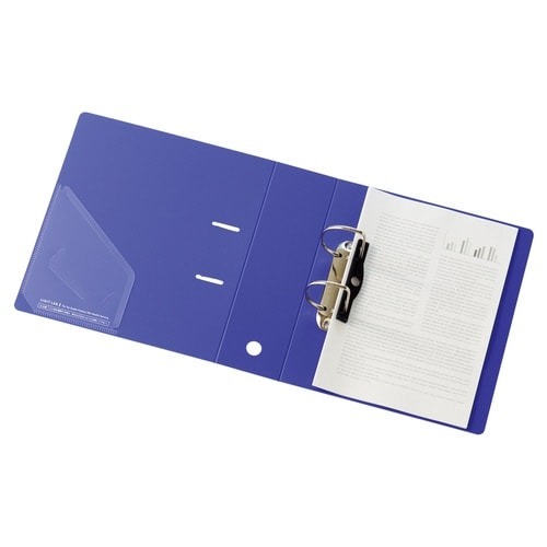 750枚大量収納のD型リングファイル。ファイルのゆがみを防ぐセーフティストッパー付き。書類をしっかり押さえる樹脂製紙押さえ付き。背見出し交換可能タイプ。