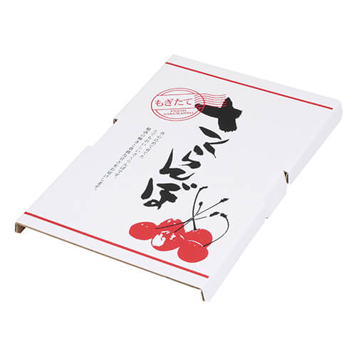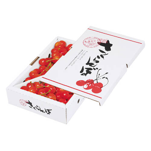 サイズが270×172×60mmのフルーツ用ギフトパッケージ。さくらんぼバラ詰1kgにちょうど良い大きさとなっています。さくらんぼのパッケージ、ギフト包装にいかがでしょうか。