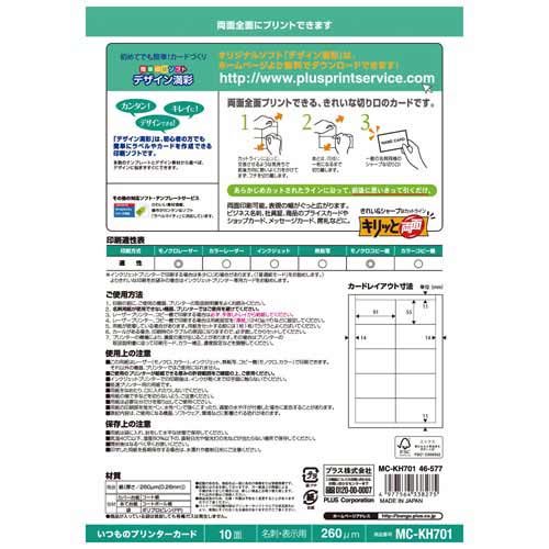 すぐに使える簡単カット。切り口がきれいで、しかも裏面全面印刷できる。カード厚=用紙厚だからプリンター適性が良い。特厚口タイプ。
