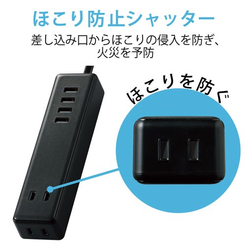 ●定格容量/AC:1400Wまで/125V/14A、USB-A:合計最大17W(1ポート最大12W)/DC5V/合計最大3.4A(1ポート最大2.4A)