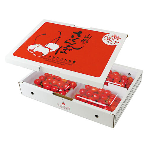 サイズが身350×252×55mmのフルーツ用ギフトパッケージ。さくらんぼ200g×4パックにちょうど良い大きさとなっています。さくらんぼのパッケージ、ギフト包装にいかがでしょうか。
