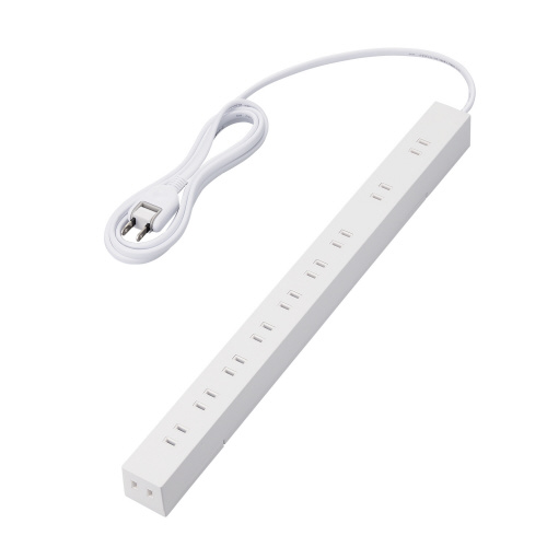 回転収納可能な脚パーツと強力な磁石を特長とする2ピン式のスリムな10個口タップです。脚パーツは展開することで重いACアダプターなどを接続した際もタップが横転しにくくなります。