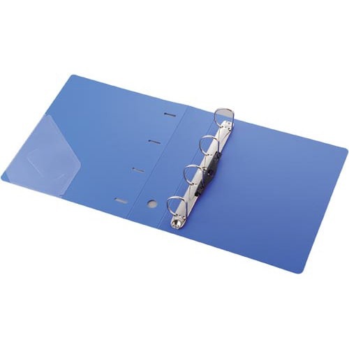 書類の抜き差しがしやすく、書類の端もそろうDリングファイル。表紙の裏側に便利なポケット、棚からスムーズに取り出しができるフィンガーホール付き。両手で開けるリングです。