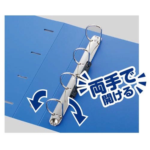 書類の抜き差しがしやすく、書類の端もそろうDリングファイル。表紙の裏側に便利なポケット、棚からスムーズに取り出しができるフィンガーホール付き。両手で開けるリングです。