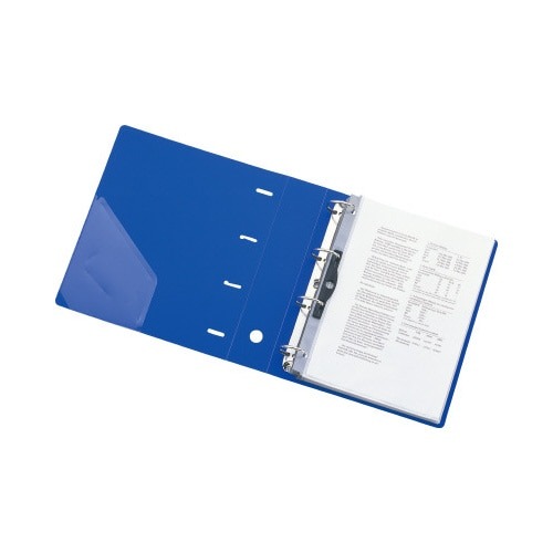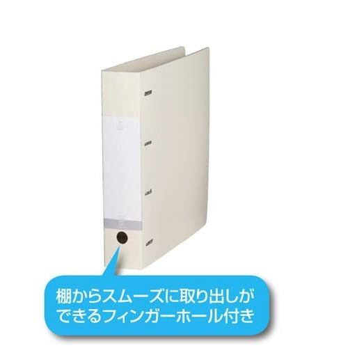 書類の抜き差しがしやすく、書類の端もそろうDリングファイル。表紙の裏側に便利なポケット、棚からスムーズに取り出しができるフィンガーホール付き。両手で開けるリングです。