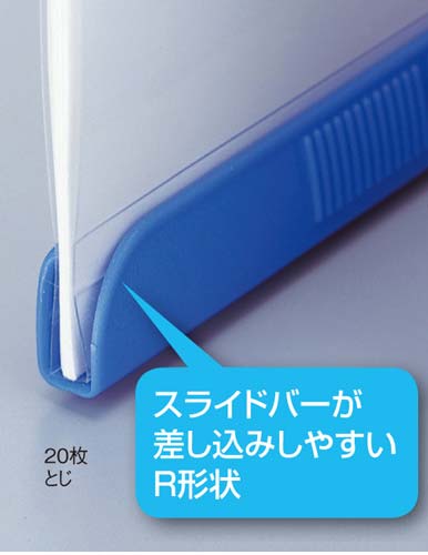 企画書などのプレゼン資料づくりに!穴をあけずにレールをシートに通すだけ!スライドバーが差し込みやすいR形状です。分類に便利なタイトルシール付きです。