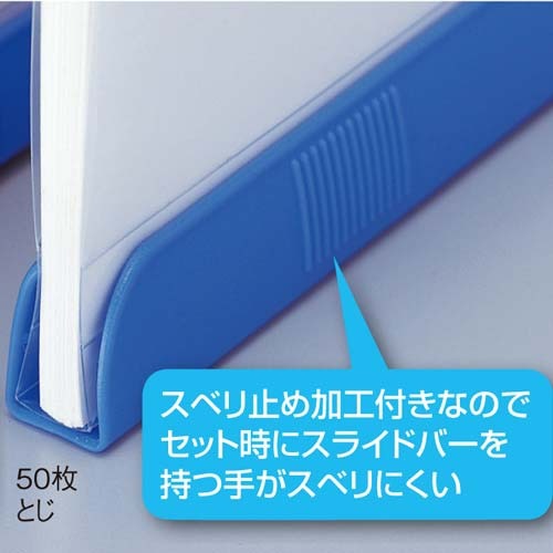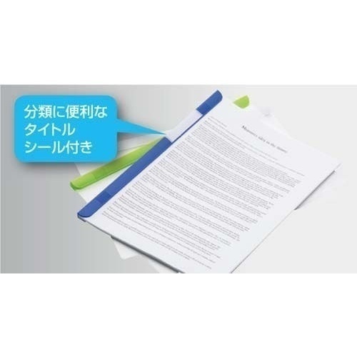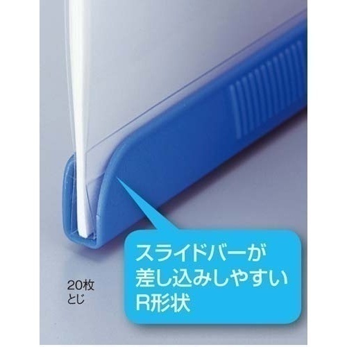 企画書などのプレゼン資料づくりに!穴をあけずにレールをシートに通すだけ!スライドバーが差し込みやすいR形状です。分類に便利なタイトルシール付きです。
