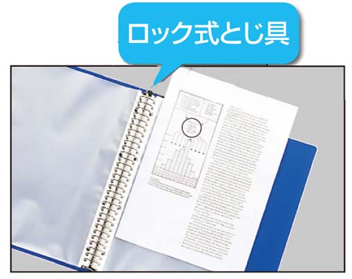 ポケットが脱着可能なクリヤーブック(差替式)で、リフィルに中紙がないタイプ。ロック式とじ具で使いやすい!
