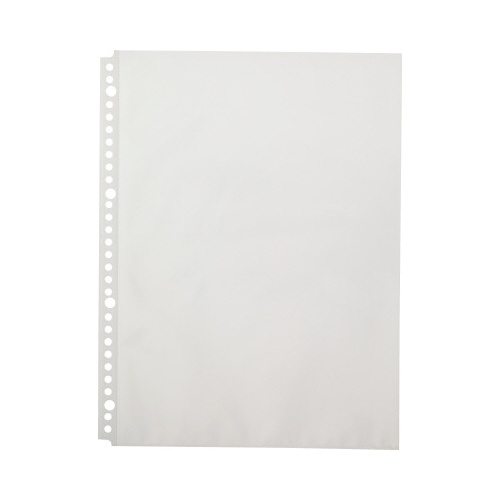 綴じ穴部をテープ補強したリフィルクリヤーポケット。エンボス加工しています。