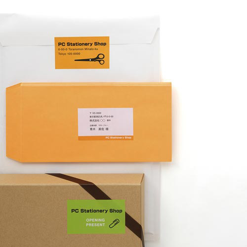 いろいろなプリンターで共有できる上質紙ラベル。手書きもOK。各種封筒への宛名やファイル、ノートのタイトルなど多用途に使えるラベル。