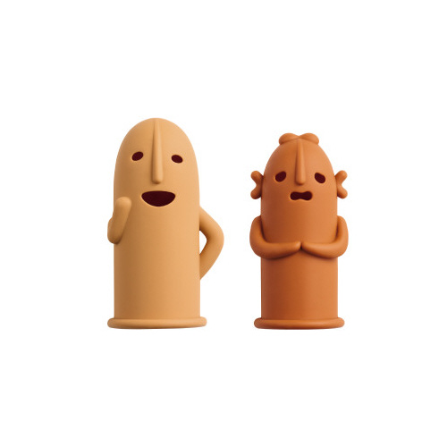 はにわの形の指サックです。「応援・サポート」をテーマにした表情豊かなはにわたちです。裏側(はにわの背中側)には紙をめくりやすいように凸凹の加工を施しており、突起で紙をしっかりキャッチできます。