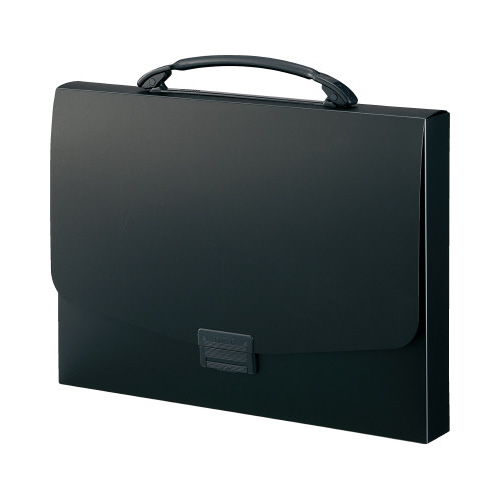 持ち方自由自在のプルアップ・グリップ採用のポートフォリオ・ナスカフレックス。下のレバーを軽く押すだけで簡単に開くワンタッチ綴じ具を採用。