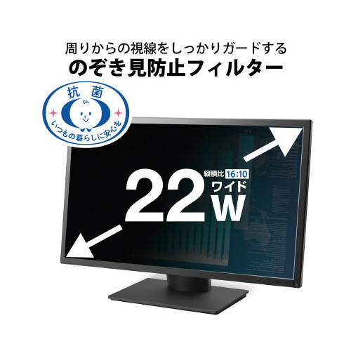 オフィスでの周りからの視線をしっかりガード!タッチパネルにも対応した、抗菌タイプののぞき見防止フィルターです。