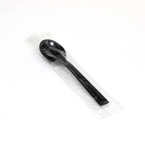 一般的な使い捨てカトラリーです。クールなブラックカラー。テイクアウトの必需品。1本ずつポリ包装された商品です。食品衛生法規格基準適合商品です。サイズは幅29×全長123mmです。