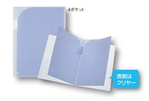 見開きポケットタイプのクリヤーホルダー。4ポケットタイプです。