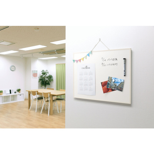 目に優しくインテリアに馴染むオフホワイト色のボード。タテ・ヨコ両用で使え、マグネットも使用可能です。