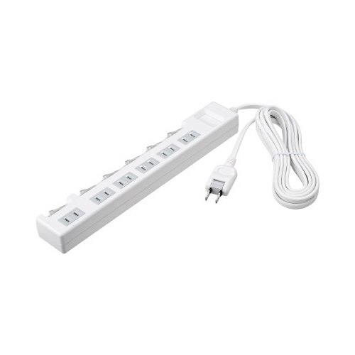個別スイッチ付きで電気の消費を抑える2ピン6個口の電源タップ。全ての差込口にホコリ防止シャッターが付いており、火災の原因となるホコリの侵入を防ぎます。