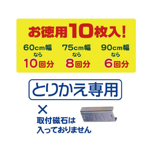 ※この製品は、とりかえ専用フィルターですので、初めて使用する方は、60cmに切れてるふんわりフィルター取付磁石付き、または当社の専用取付磁石をお買い求めください。フィルターを固定するときは、専用取付磁石でしっかりとつけてください。長時間使用される業務用等ではご使用しないでください。