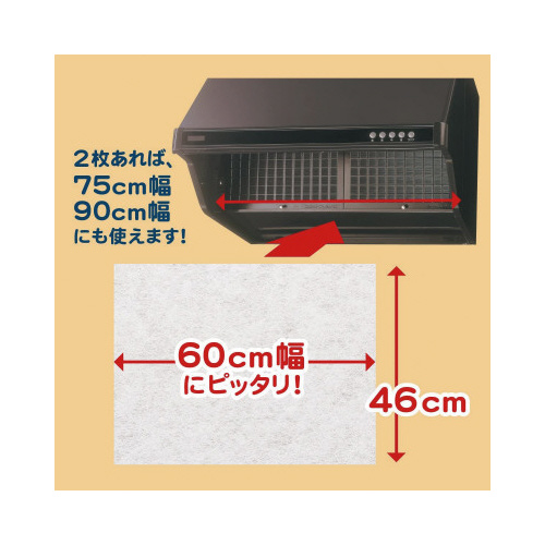 取り替え専用の換気扇カバーです。レンジフードの油汚れを防止します。レンジフードが60cm幅なら10回分、75cm幅なら6回分、ムダなく使えて経済的です。
