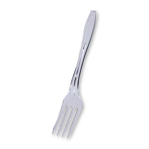 1本1本がポリ袋に包装されたプラスチックフォークです。耐熱温度:約70度