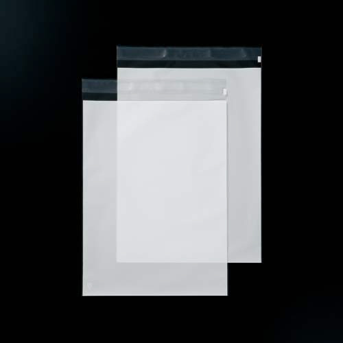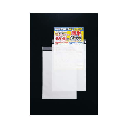 表紙が白、裏面が透明のテープ付きフィルム封筒。