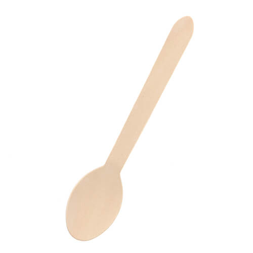 紙製の単袋に包装された木製スプーン。脱プラで環境に優しいカトラリーです。