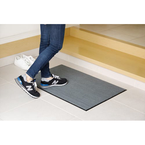 マイクロファイバー100%で除塵性、吸水性に優れた吸水マット。1枚で約1.3リットルの吸水可能。靴底だけでなく、傘などの水分を吸うことができる。洗うこともでき、乾きも早いのでメンテナンスもしやすい。