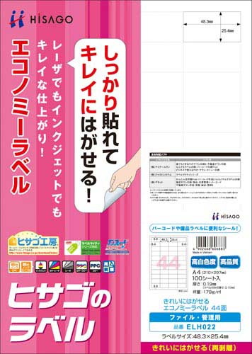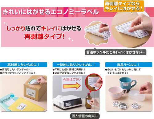 しっかり貼れてきれいにはがせる再剥離タイプ。バーコードラベル、商品ラベルなどに便利なサイズです。個人情報が印刷されていてもキレイにはがして廃棄できるため個人情報保護法の対策にも役立ちます。